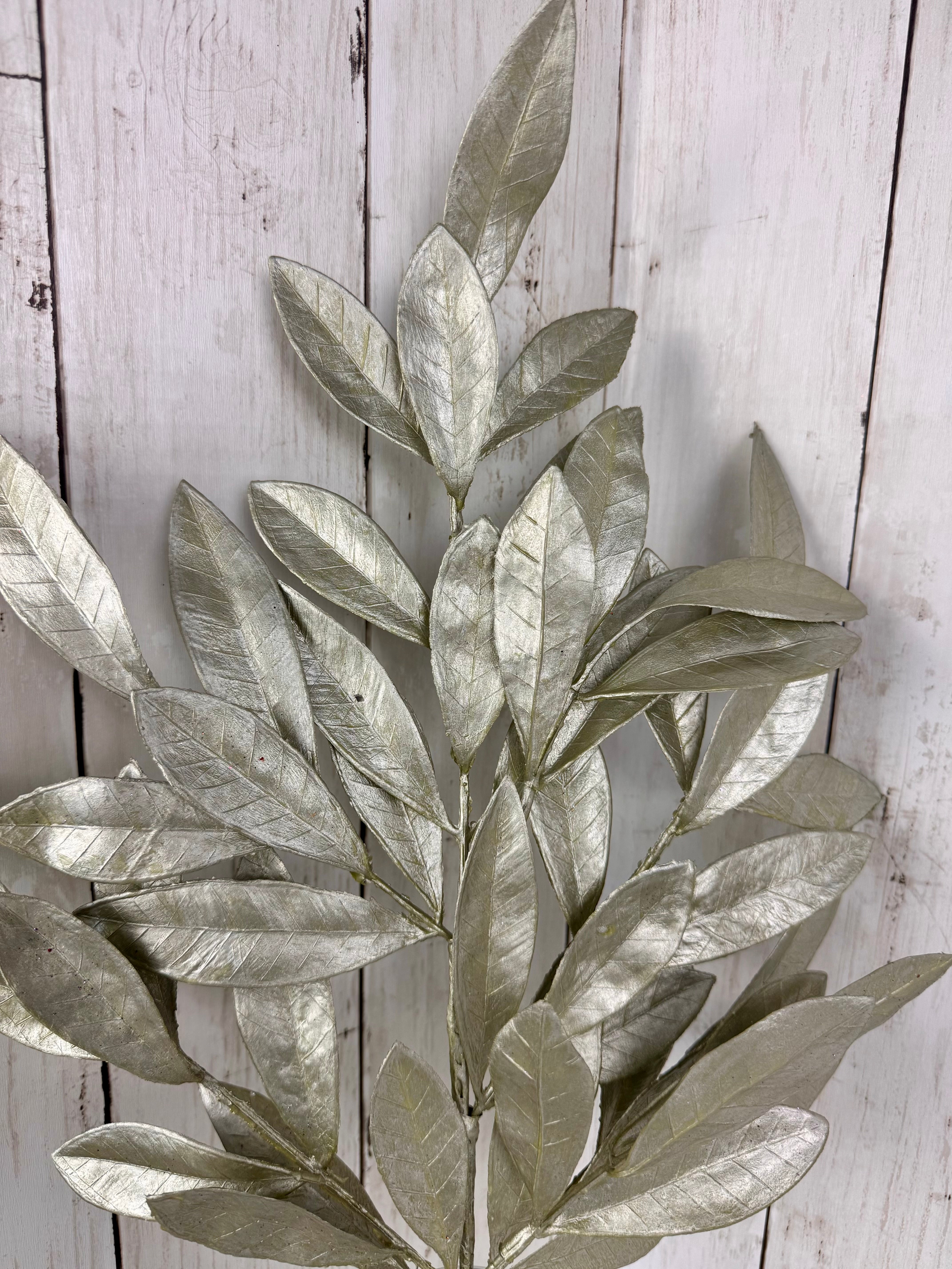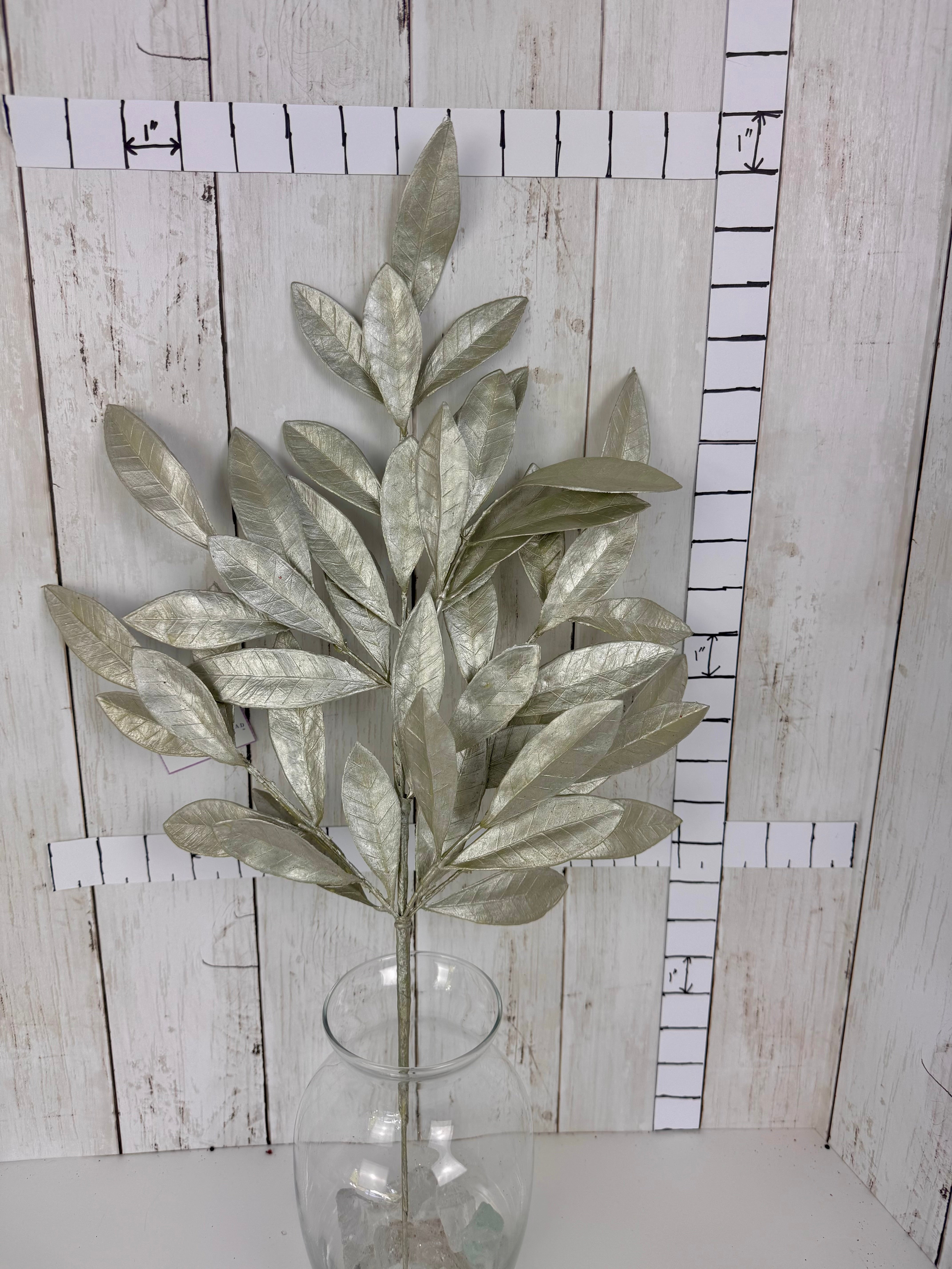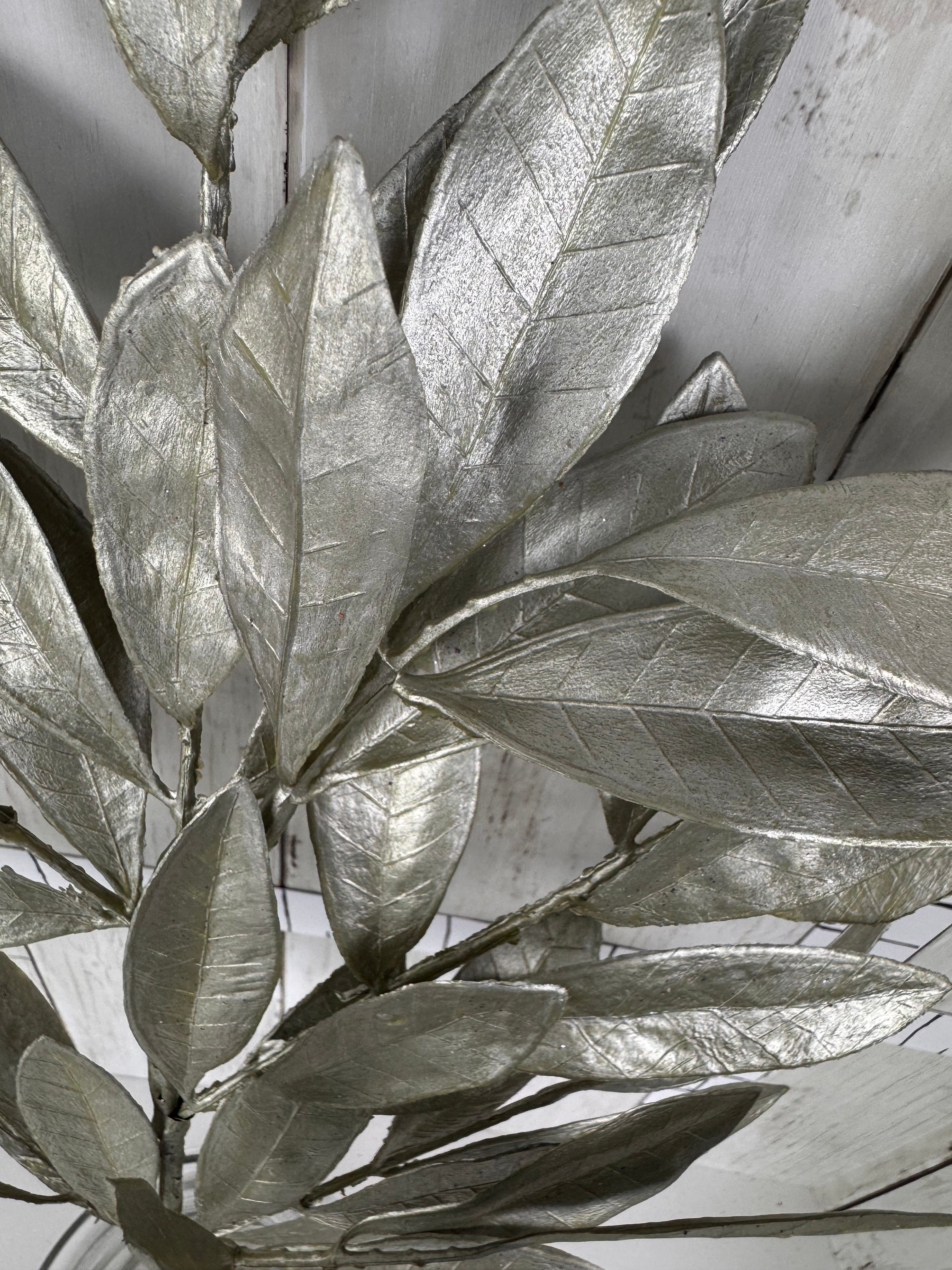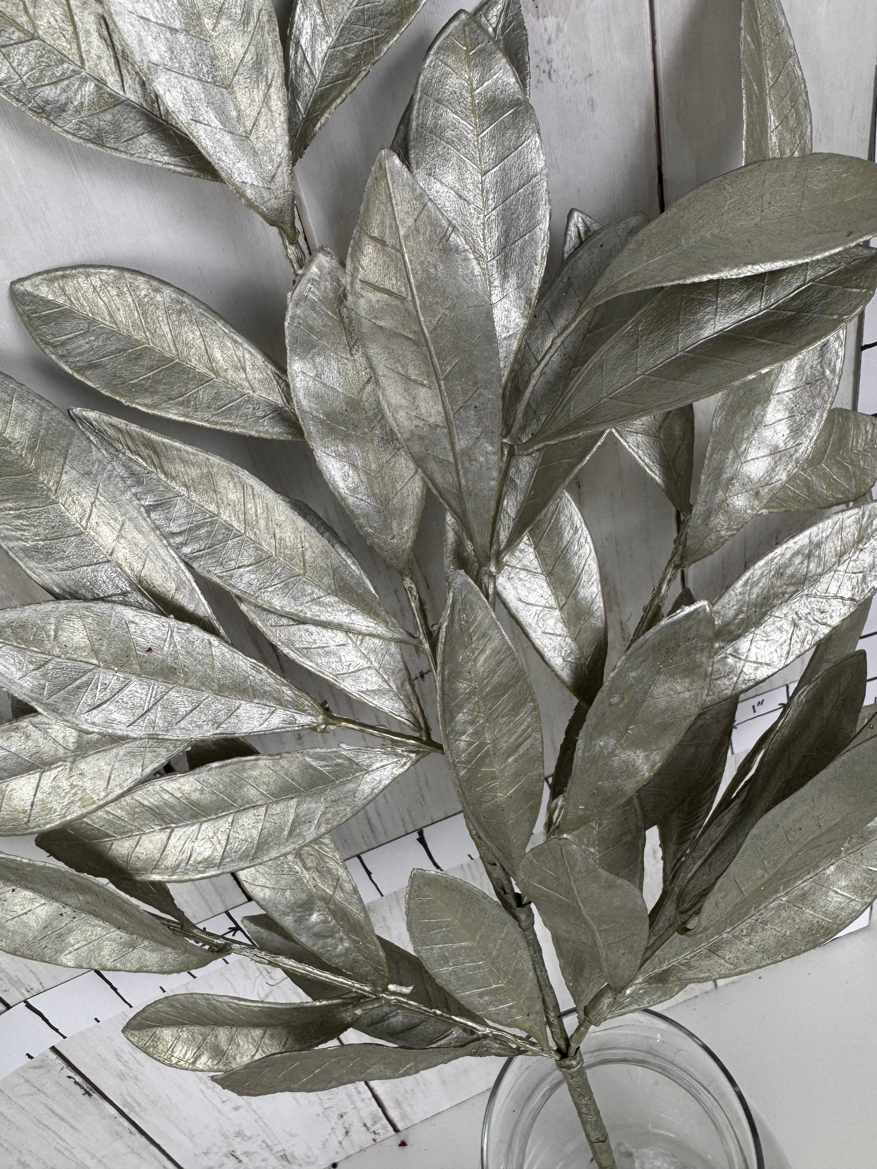 Shimmer and shine with this elegant metallic silver leaf stem. Perfect for adding a touch of glamour to wreaths, centerpieces, or seasonal displays, its sleek finish catches the light beautifully. Whether styled for the holidays or used year-round as a bold accent, this stem brings instant sophistication and depth to any design.